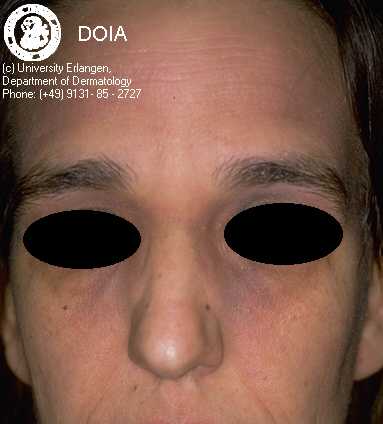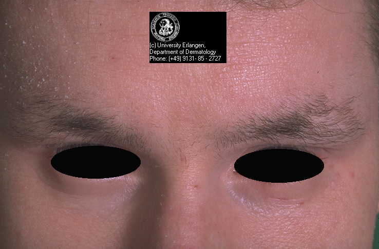 Typisches Hertoghe'sches Zeichen: Rarefizierung (Ausdünnung) der seitlichen Augenbrauen