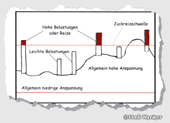Der Moment, in dem ein Mensch mit Neurodermitis auf Juckreiz mit Kratzen reagiert (auch Juckreizschwelle genannt) ist individuell verschieden und von der emotionalen Situation sowie der aktuellen körperlichen Verfassung abhängig. Die Juckreizschwelle wird unter an derem durch folgende äußere Faktoren beeinflußt (siehe Abbil dung):